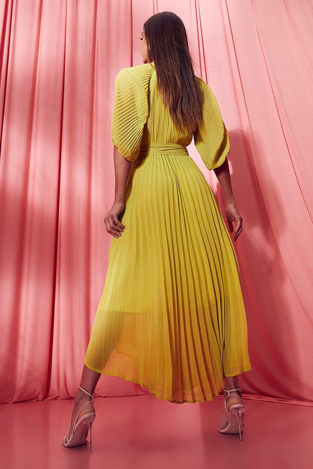Dusk Puff Sleeve Midi Dress Chartreuse Green Aje